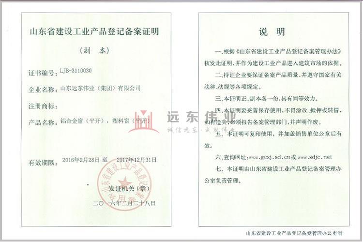 門窗備案證明 2023-09-13 09:18:46 上一條:全國工業(yè)產(chǎn)品生產(chǎn)許可證 下一條: 建筑工程施工總承包叁級 市政公用工程施工總承包叁級 建筑機電安裝工程專業(yè)承包叁級 古建筑工程專業(yè)承包叁級 環(huán)保工程專業(yè)承包叁級 相關資訊 夯實基礎·砥礪奮進 | 重慶龍... 正在施工的和新承接的項目情... 近年完成的類似項目情況表... 關于加強項目部農(nóng)民工工資支... 熱門推薦 黃海明珠中心 濟寧運河城 開發(fā)區(qū)萬達廣場 中國重汽濟寧商用車有限公司