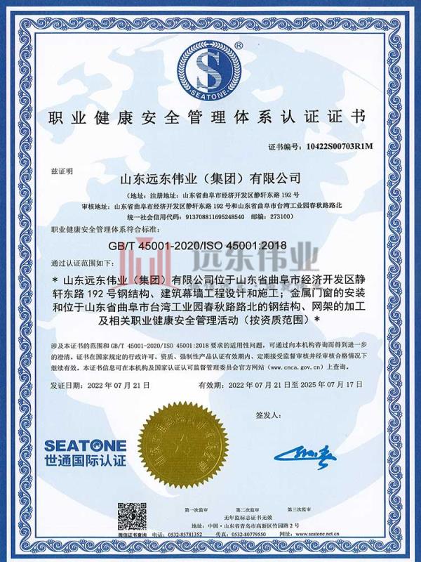 職業(yè)健康安全管理體系認(rèn)證證書 2023-09-13 09:25:44 上一條:重合同守信用企業(yè) 下一條: 環(huán)境管理體系認(rèn)證證書 相關(guān)資訊 夯實(shí)基礎(chǔ)·砥礪奮進(jìn) | 重慶龍... 正在施工的和新承接的項(xiàng)目情... 近年完成的類似項(xiàng)目情況表... 關(guān)于加強(qiáng)項(xiàng)目部農(nóng)民工工資支... 熱門推薦 黃海明珠中心 濟(jì)寧運(yùn)河城 開發(fā)區(qū)萬(wàn)達(dá)廣場(chǎng) 中國(guó)重汽濟(jì)寧商用車有限公司