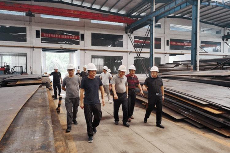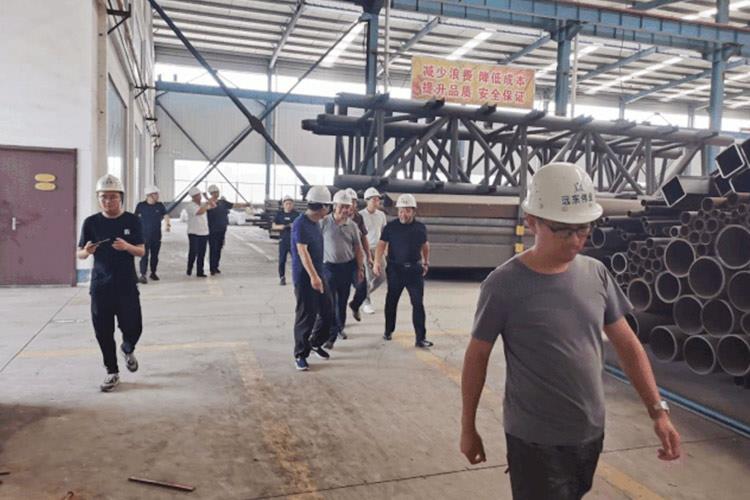 隨后,為了讓中國一冶集團(tuán)領(lǐng)導(dǎo)進(jìn)一步了解公司情況,公司領(lǐng)導(dǎo)陪同考察組一行去往鋼結(jié)構(gòu)加工車間、網(wǎng)架加工車間、管桁架加工車間進(jìn)行實地考察。
